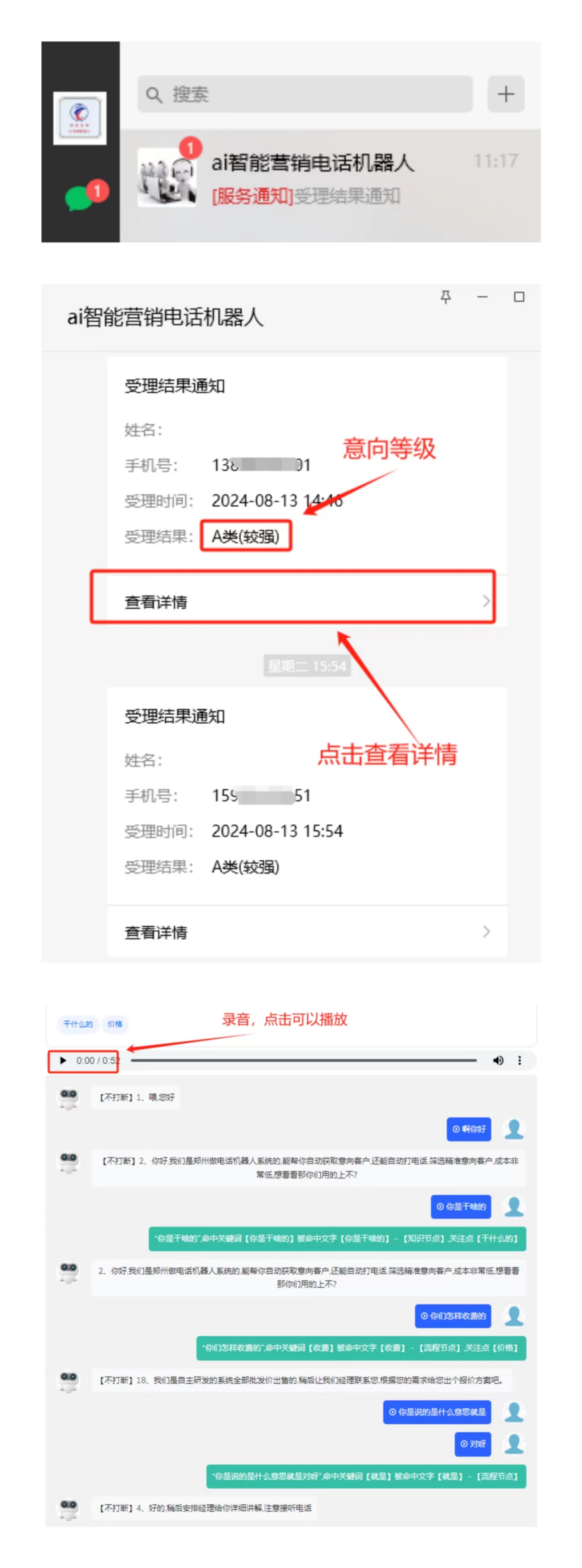 嘉单科技电话机器人是帮你搭建一个后台,有真人录制语音话术,上传到后台上,对接线路、语音识别系统,交付给用户。用户这边只需要导入数据,设置拨打时间,即可自动运行,帮助我们自动拨打电话,实时推送意向客户到微信上。