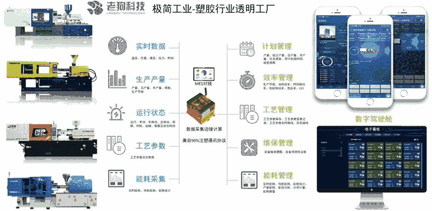 深圳老狗科技注塑机数据采集网关EBOX-DKM,是一款针对注塑机实现数据采集的设备,无需注塑机设备生产商开放协议,只需将采集网关设备与注塑机控制器连接,即可对注塑机进行全量数据无损接入,高性价比,即插即用,兼容100%老旧注塑机及周边设备,可对接本地服务器、云平台、MES、ERP等第三方系统的数据。