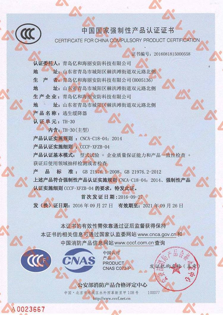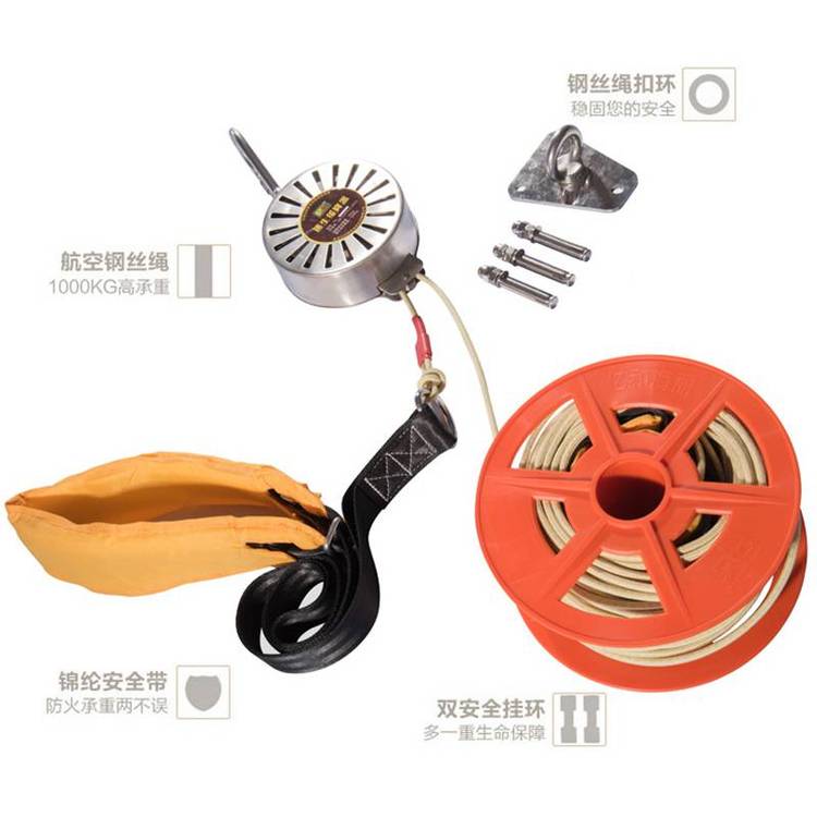 产品装箱单 | 缓降器主机1台; 绳索1条; 安全带2条; 绳盘1件; 挂架1件; 弹簧钩1件; M10膨胀螺栓3件; 合格证1件; 使用说明书1本。 | ||