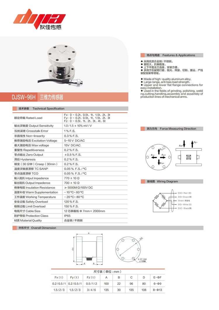 额定载荷:Fx:0~3t Fy:0~3t Fz:0~6t