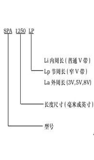 注:仅3V,5V,8V(3VX,5VX,8VX)长度单位为英寸,但长度编码是有效外周长的10倍,例5V 1060La有效外周长为106英寸。 |