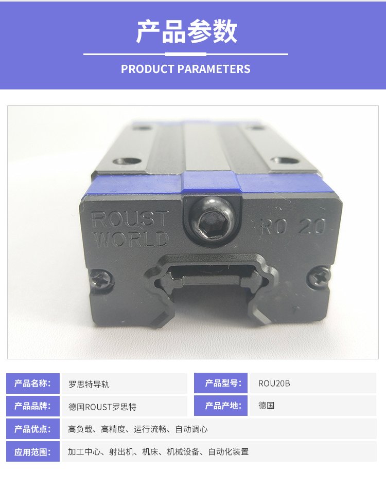 德国罗斯特ROU20B线性导轨四方型滑块上锁式重负荷方形滑动滑块