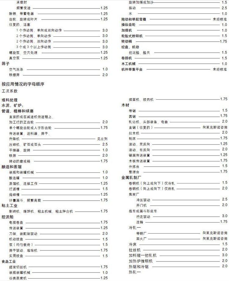 ? ? 3.所需联轴器的扭矩根据下面式子决定:联轴器的扭矩= S.F. ( 工况系数) x 系统扭矩(Nm)