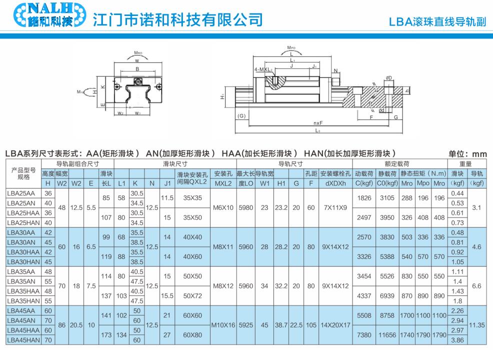 NALH(诺和)直线导轨性能特点: