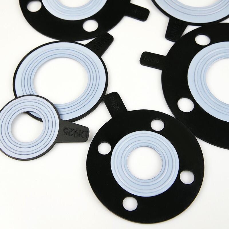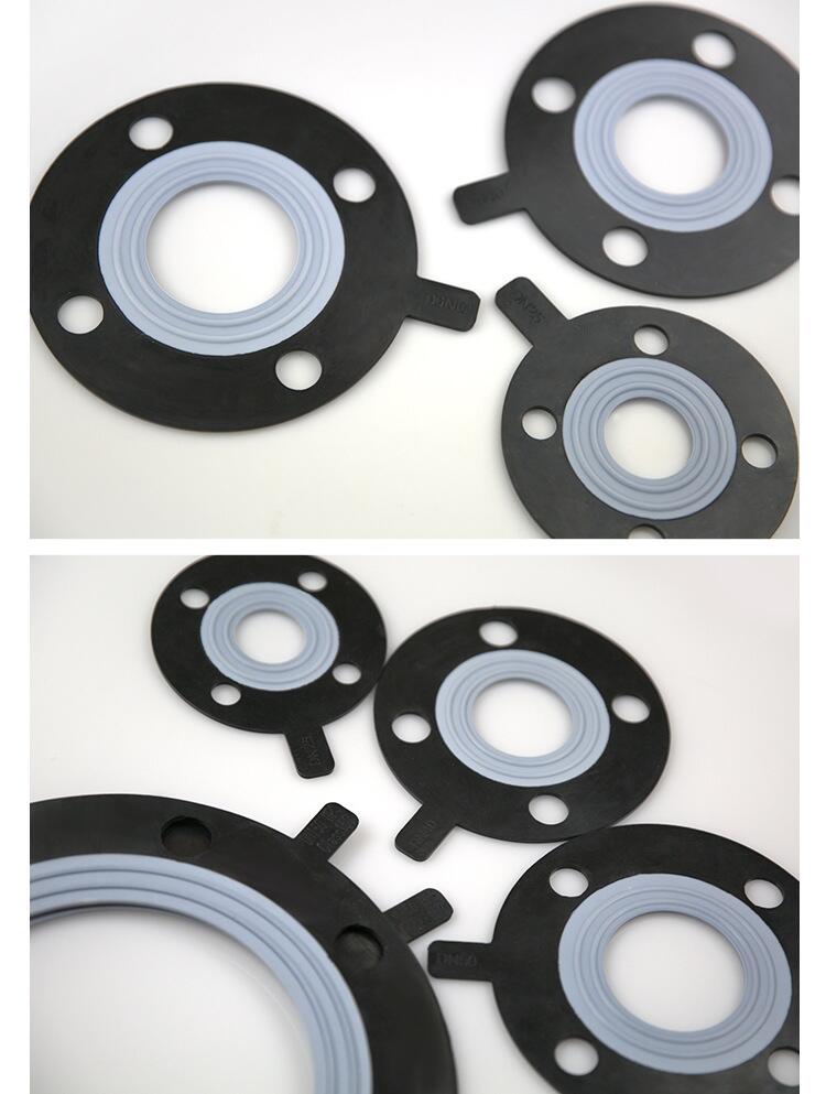 5) 特有的复合工艺,将PTFE牢牢地粘在橡胶弹性体上,防止了分层和渗漏。6) 这种完美的垫片适用于聚四氟乙烯、玻璃钢、PVDF、聚丙烯铸铁或球墨铸铁制的法兰.