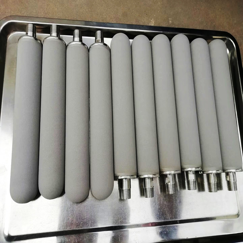 钛棒滤芯(包括管式和板式)是以工业高纯钛粉(99.4%)为原料,经分筛、冷等静压成型后,高温、高真空烧结而成。因而钛棒滤芯以其高科技材料组成