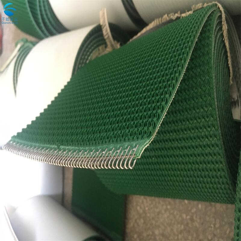 我公司裙边挡板导条都有多种规格,在很多情况下,我们需要加装不同高度的不同型号的挡板、裙边,防跑偏导条到皮带上,输送光滑、散装的物料到高处,令物料即使在高角度倾斜也不至于散落,这就是pvc群边挡板提升输送带,pvc挡板输送带,pvc群边输送带,pvc提升输送带主要应用在包装行业,物流行业,电子行业,食品行业,水产品,烟草行业,蔬菜,水果,茶叶,颗粒产品,粉状产品物料的输送,具有良好的效果,既能保证在高坡度的环境中,不至于下滑,散落。我们主要采用机械接头,机械热硫化接驳,直接让群边,挡板,导条与输送带融为一体,更好的利用皮带的特性,对输送带无伤害,使输送带的使用寿命更长。同时经过特殊加工还可做成导向带、提升带、裙边带等。