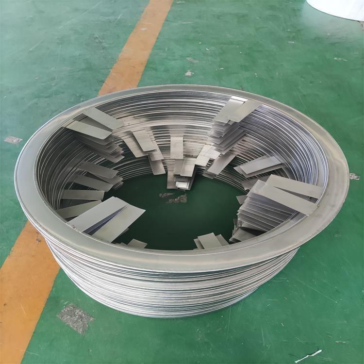 金属包覆垫片优点是强度大、不易碎、牢固结实,但回弹力有限,需要求法兰表面平坦及紧固力很高才能达到良好效果(可改进、外敷石墨板)。根据不同材料可以组合成201、304、316不锈钢包石墨(耐温650度)包覆垫、包石棉包覆垫,包陶瓷纤维(1400度)包覆垫片等多种形式。 材质:A3、不锈钢(201、304、316)、铜、铝等。填充料:柔性石墨(80%)、石棉(10%)、无石棉、陶瓷纤维(10%)等。主要用途:适用于直径较大的压力容器(如换热器、反应器、铸铁法兰、汽缸头、锅炉等)法兰的密封。各种介质的机泵、管阀、管道及各类设备的法兰等密封。适用于中、低压工况。不锈钢包覆垫片的焊接:大于1米或非腐蚀用工况可用焊接金属模式;316、316L小型一般禁止焊接。改进:为提高密封效果外层可以粘贴柔性石墨板材。据耐温选择包覆物:石墨-耐温650 耐腐蚀;陶瓷纤维-耐温1200-1600。方形金属包覆垫片应弧度圆角整体锻造,氩弧焊焊接。禁止直角,锡焊!否则使用后受压、受热分裂。
