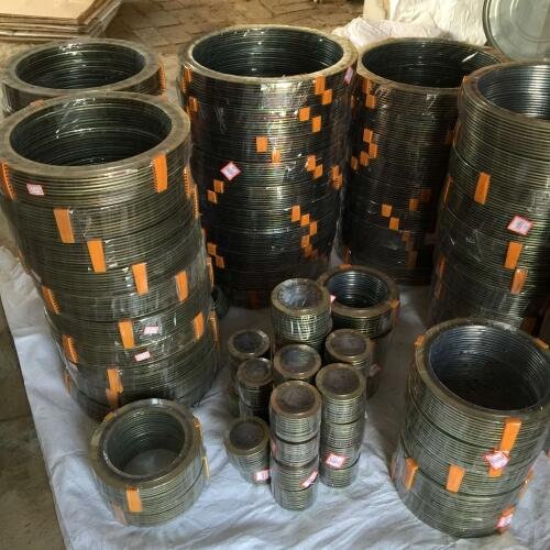 金属缠绕垫片主体曲V型金属带与非金属带相互重叠连续缠绕而成。金属带与非金属带应紧密贴合、层次均匀,无折皱、空隙等现象。全螺纹螺栓,双头等长螺栓适合在什么地方应用金属缠绕垫片性能好应用广泛,是现在化机器当中应用更为广泛。回弹性优良的金属缠绕垫片能够对管道系统的压力热循环和振动进行自动,适用于负荷不均匀、接合力易,温度与压力周期性变化、有冲击或震动的。在法兰垫外观设计上为了安装方便,根据垫片口径大小,在垫片焊上2~8个定位带,让定位带扣在法兰孔上,以防安装时垫片移位或脱落,节约了辅助材料及工时.一般分为以下几种类型:金属缠绕垫片采用SUS304、SUS316("V"形或"W"形)。是阀门、泵、换热器、塔、人孔、手孔等法兰连接处的静密封原件,广泛地用于石化、机械、电力、冶金、造船、、原子能和等部门。金属缠绕垫片为半金属垫中回弹性佳的垫片,结构密度可依据不同的锁紧力要求来制作,并利用内外钢环来控制其大压紧度,缠绕垫片的法兰密封面的表面精度要求不高。金属缠绕垫片适用于负荷不均匀、接合力易,温度与压力周期性变化、有冲击或震动的。金属缠绕垫片是阀门、泵、换热器、塔、人孔、手孔等法兰连接处理想的静密封原件。鑫弘密封制品主营产品:金属缠绕垫片,柔性石墨复合垫片,四氟垫片,无石棉垫片,