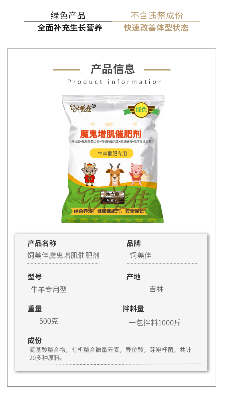 产品商品名称 | 饲美佳魔鬼增肌催肥剂 | ||