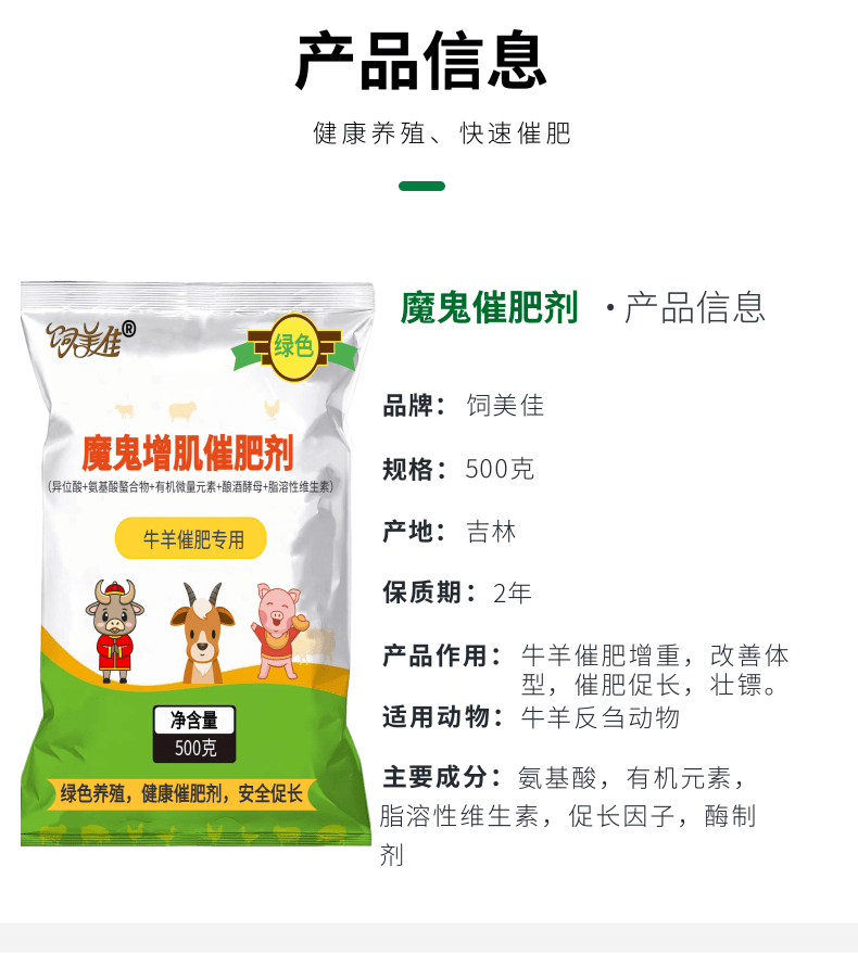产品商品名称 | 饲美佳魔鬼增肌催肥剂 | ||