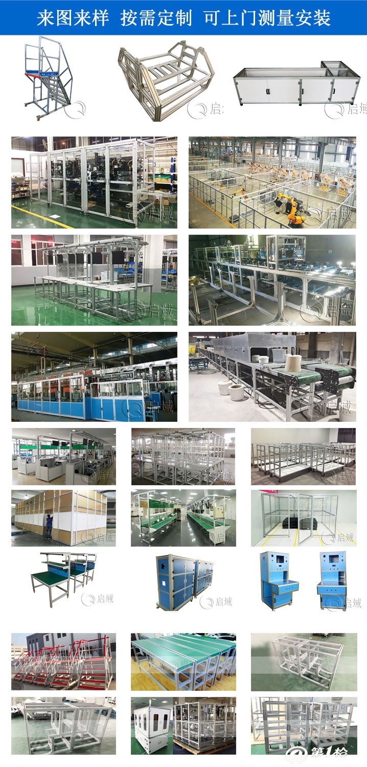 上海启域金属以10多年行业经验,致力于为客户提供铝型材框架设计解决方案。承接铝型材物料架,车间物料货架,仓储货架等加工定做,批发销售铝型材配件及型材,规格丰富齐全,价格合理,售后完善。