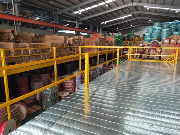产品名称:阁楼平台货架 1.产品组成:立柱、主横梁、挂梁、支撑梁材料采用钢材,承载能力强。平台组装式结构,随意组合,安装、拆卸方便灵活,层板可采用木版、钢板、钢格栅板等材料做层板。 2.产品承重特点:阁楼平台一般采用立柱作为支撑,下层可自由行走车或,柱间距3~5m,平台承重300~1000kg/每平方。 3.产品结构特点:利用重型搁板式货架作为主体,楼面板通常选用冷轧型钢楼板,互扣式结构,楼面板与楼板梁之间采用六维锁紧机构锁定,与传统花纹钢楼板或钢格栅楼板相比,它具有承载能力强、整体性好、承载均匀性好、精度高、表面平整、易锁定等优势,并且易匹配照明系统,存取、管理均较为方便。楼面板有普通平面型、凸点型、镂空型等多种类型可选,500-1000公斤之间楼面板承载通常在每平方米300-1000公斤之间,楼层间距通常为2.2m~2.7m,顶层货架高度一般为2m左右,充分考虑人机操作的便利性。通常配设楼梯、液压升降台或电梯,或由叉车将货物运至楼上。安装、拆卸方便灵活,可根据场地和需要,灵活设计成二层、三层阁楼,充分利用空间,广泛用于汽车、电子、轻工、机械等行业。 4.产品处理:重型货架采用冷轧钢折弯成型,全部货架的表面均经酸洗、除锈,磷化静电喷涂等工序处理,外形美观、经久耐用。 5.产品规格尺寸:所有规格尺寸按场地大小来决定。 6.产品价格:不同规格承重价格不同。