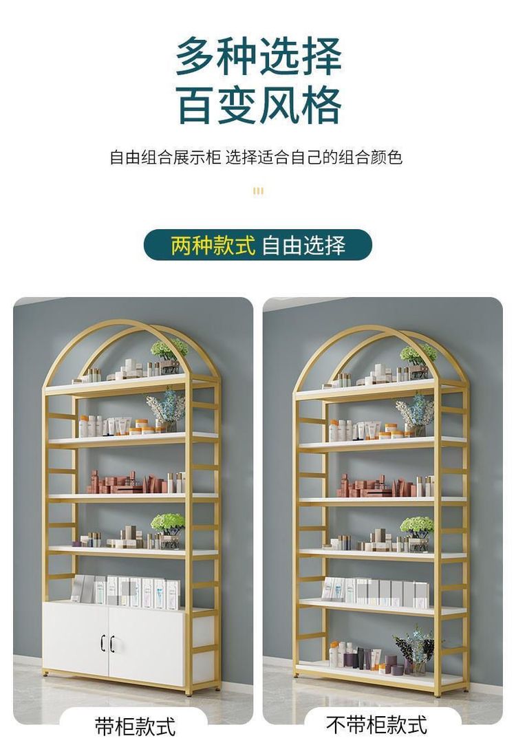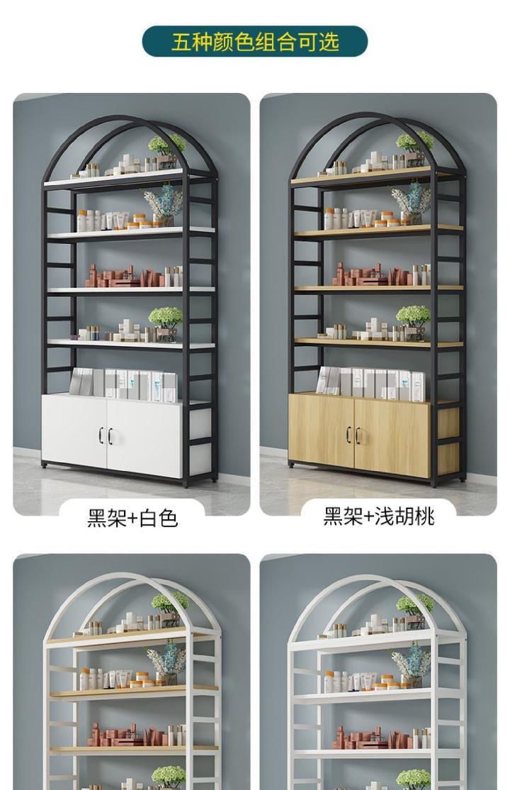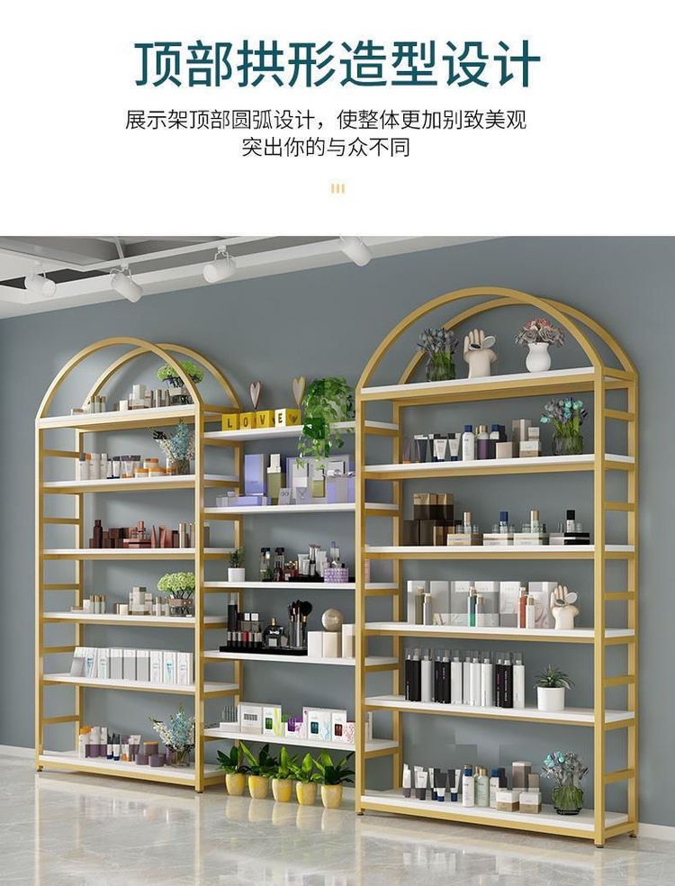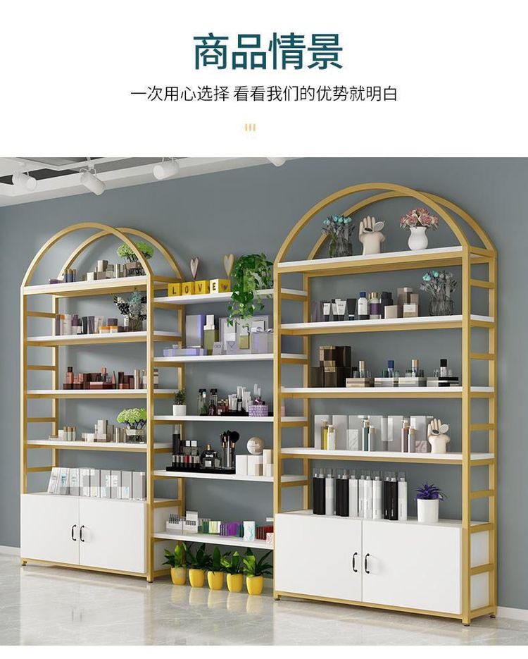 高档化妆品展示柜整店设计金属口红展示架台木带灯眼影彩妆陈列柜