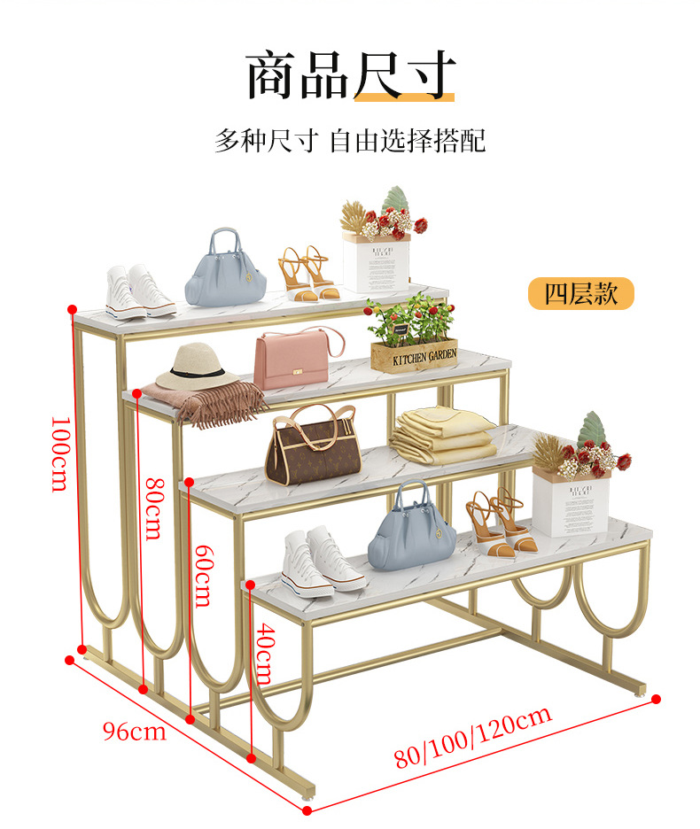 服装店流水台女装店童鞋包架高低多层展示桌中岛展柜陈列置物货架