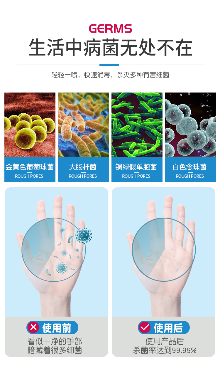 杀灭微生物类别 | 大肠杆菌、金黄色葡萄球菌、绿脓杆菌、白色念珠菌等 | ||