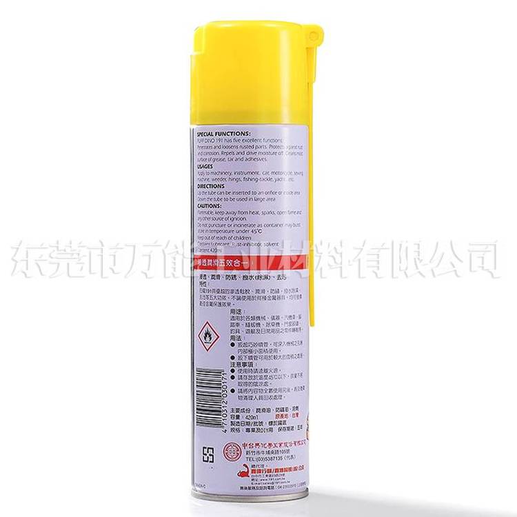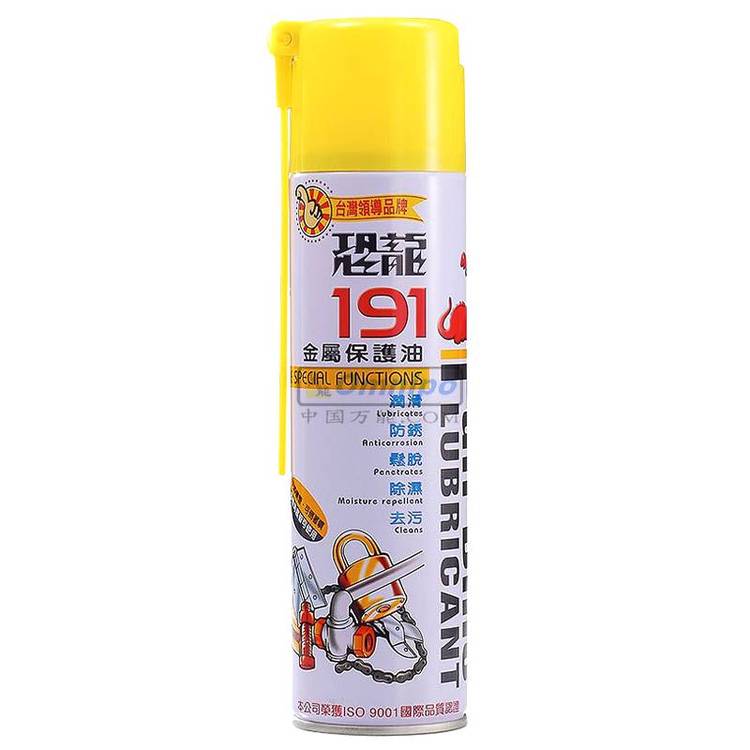 恐龙191具有优越的渗透松脱、润滑、防锈.拨水除湿、去污等五大功效,不论使用于何种金属器具,均可发挥金属保护效果。