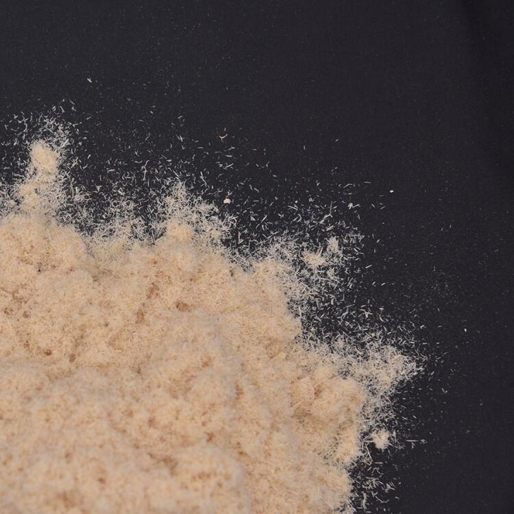 2、木粉纤维因天热木头粉碎每根纤维都含有倒刺和细小纤维,可有效粘结木质材料增强柔韧性,填充产品裂缝、孔洞增强密度。
