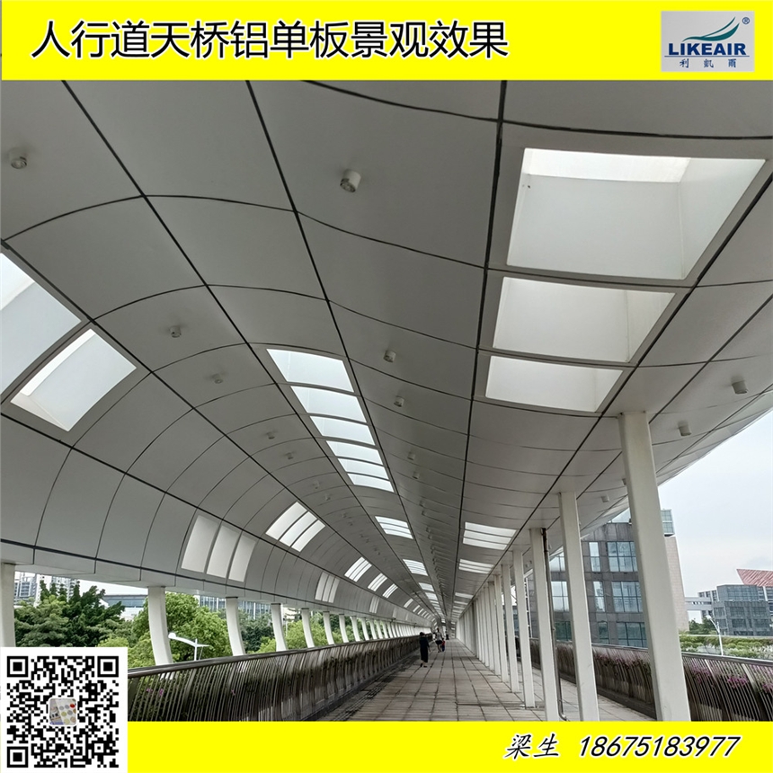 2、 过道天桥铝单板吊顶由于具有质量轻、可设计功能强、设计简洁、安装工期短等优点。天桥桥梁上的辅助装饰面主要包括在原有桥梁上增加的整体结构外装饰面使用铝单板包边,人行道天桥或者自行车通道吊顶,桥栏杆广告牌、路标牌、照明底板等。