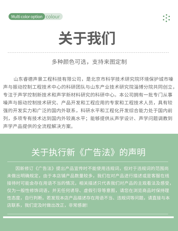 吸声系数/NRC | 平均吸声系数可达0.65 | ||