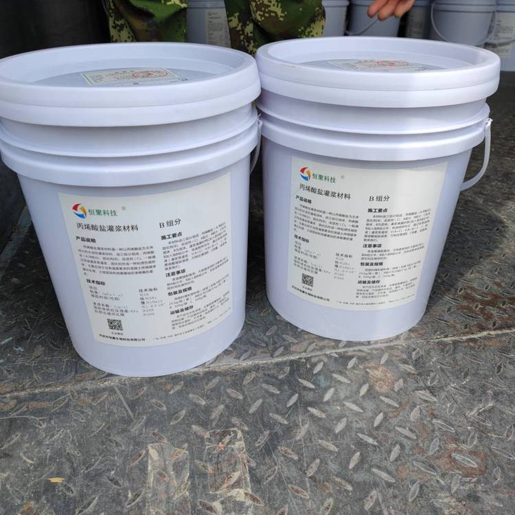 HJ501N丙烯酸盐灌浆材料是一种以丙烯酸盐为主体成分的低粘、高粘弹性水溶性灌浆堵漏材料,由三组份组成,丙烯酸盐(A组分)、固化剂(B组分)、促进剂(C组分)。产品一般通过双液灌浆泵灌浆,固化后形成一种粘弹性凝胶体,主要应用于水利、采矿、交通、工业及民用建筑领域等没有强度要求的混凝土伸缩缝渗漏水处理、土层固结和地基基础防渗帷幕的灌浆。