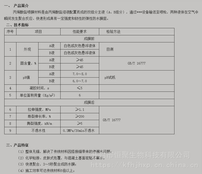 丙烯酸盐喷膜防水材料 HJ900