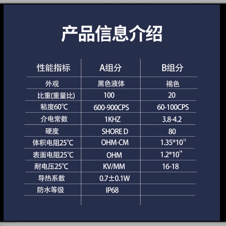 用途范围 | 用于防爆盒灌封,荧光灯电子镇流器,金卤灯电子镇流器、高压汞灯电子镇流器、各类电子变压器、开关电源、滤波器、真空断路器、LED模块、互感器、集成电路、继电器、等电子产品 | ||