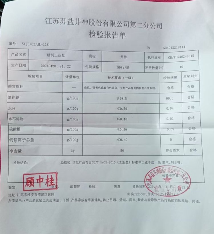 主要成分 | 工业盐 | ||