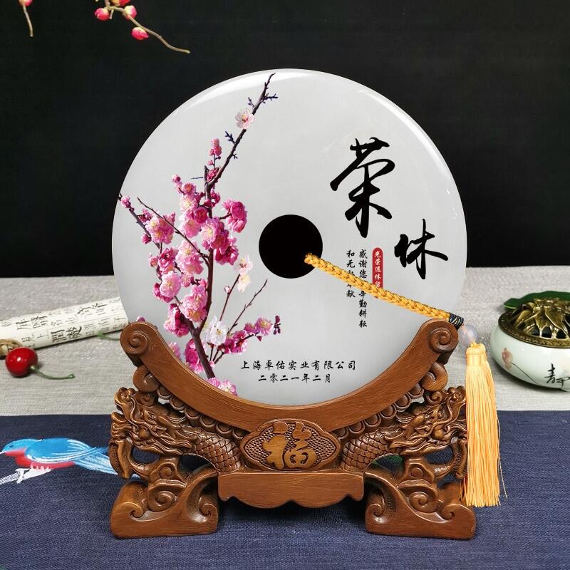 焕环祥工艺 办公桌扇形屏风摆件 玉石平安扣礼品