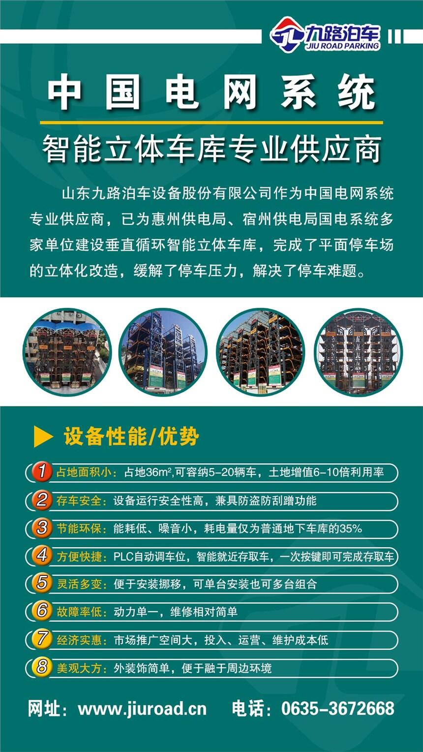 山东九路泊车设备股份有限公司一家专注于垂直循环智能立体车库研发、生产的高端制造企业,凭借“技术领先,制作精良”的品质理念和勇立潮头的开拓精神,成为立体停车行业的领军者。拥有垂直循环立体车库单品创新技术70余项,从安全出发,将十四大安全理念植入垂直循环智能立体车库。