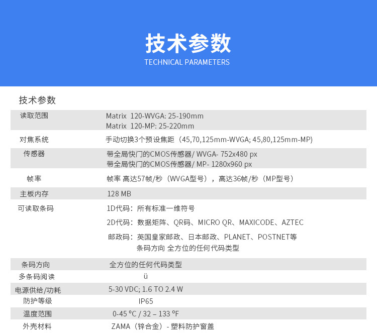 条码方向 | 0°-360°(垂直视场角内) | ||