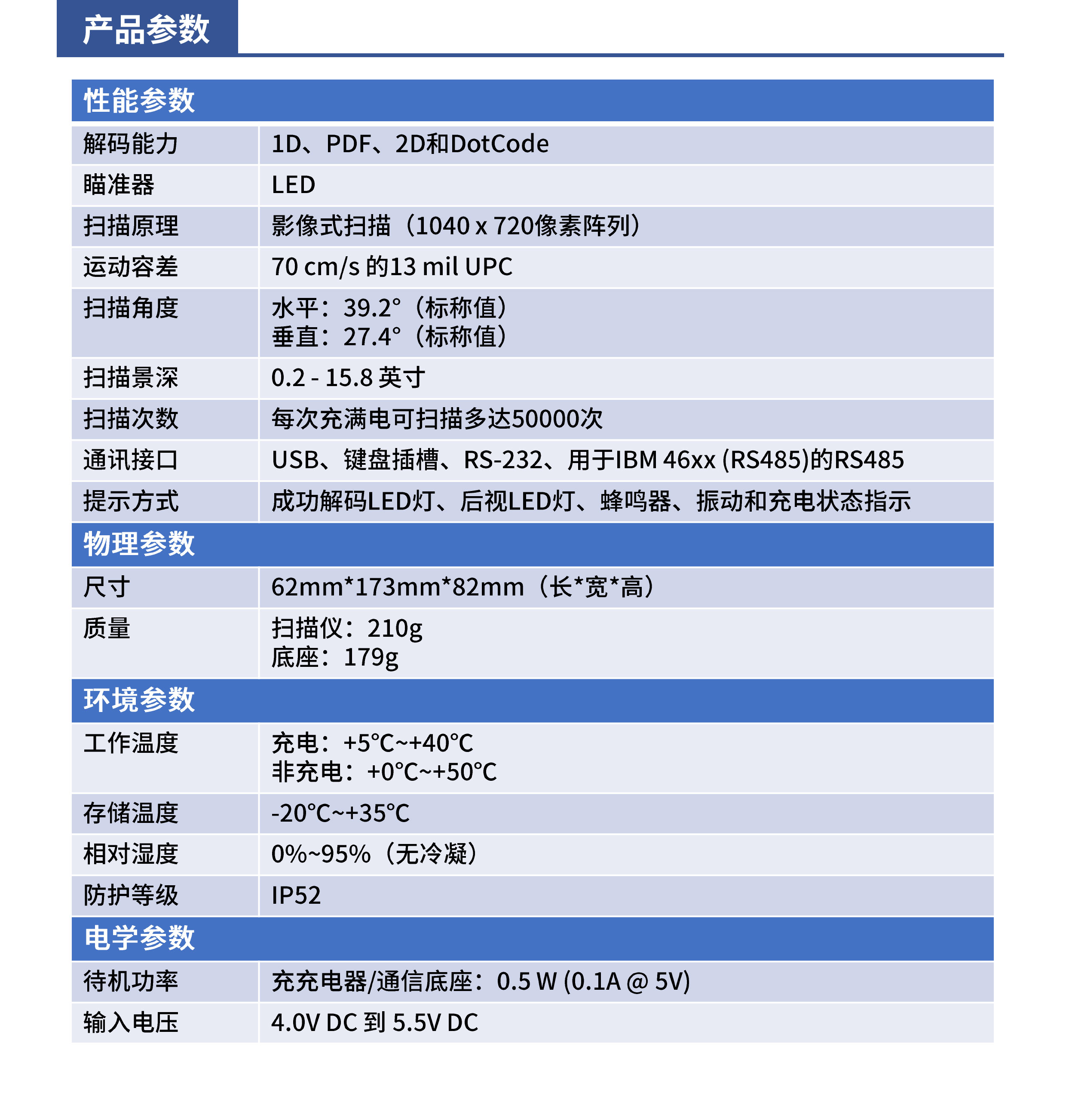 解码能力 | 1D、PDF、2D和DotCode | ||