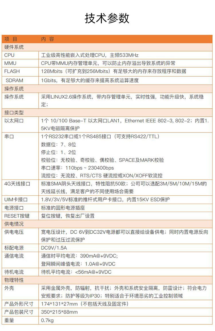 4G天线接口 | 标准SMA阴头天线接口,特性阻抗50欧 | ||