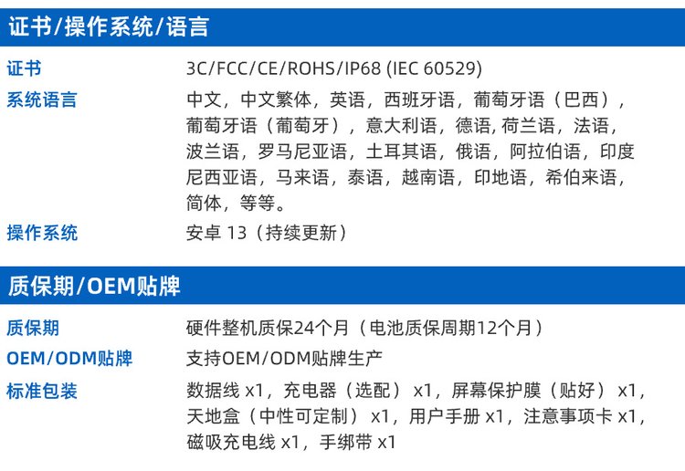 包装清单 | 数据线 x1,充电器(选配) x1,屏幕保护膜(贴好) x1,天地盒(中性可定制) x1,用户手册 | ||