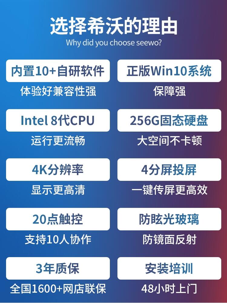 我们公司主要代理希沃教学类产品。包括:交互智能平板、幼教一体机、交互电子白板、希沃智慧黑板、网课学习机、云屏等产品。大量现货库存,样机体验,价格更优,工程师送货上门安装,有需要的话联系我。