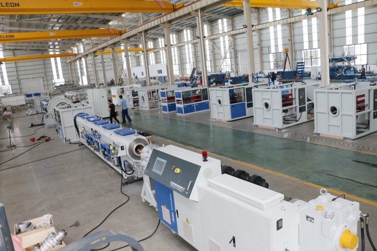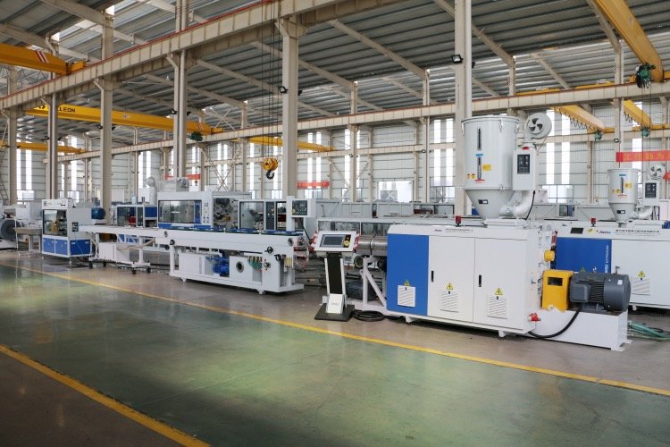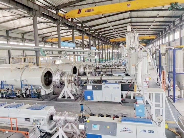 金纬机械HDPE供水管生产线 燃气管材生产设备性能特点:该生产线是适用于HDPE、PP等聚烯烃类管材的高速挤出。与普通生产线相比,其节能效果较好,其生产效率增加了很多,不但节省了场地及人力成本,还提高了效率。该生产线外形美观,自动化程度高,生产稳定可靠。