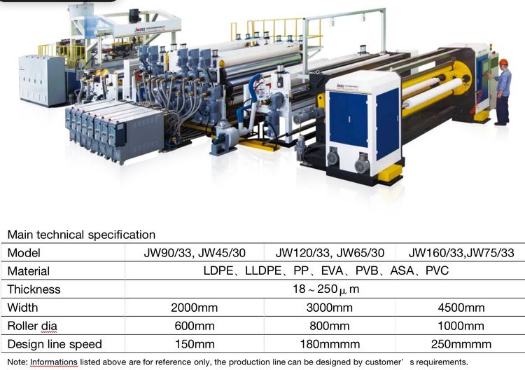 主要用于生产CPP CPE EVA PVB 单层、多层光膜;CPP CPE EVA PVB 单层、多层压花膜;CPP CPE 透气膜。