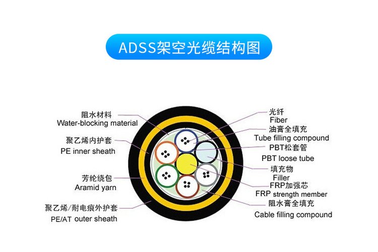 12芯单模光纤ADSS光缆200M跨距架空电力光缆厂家直销