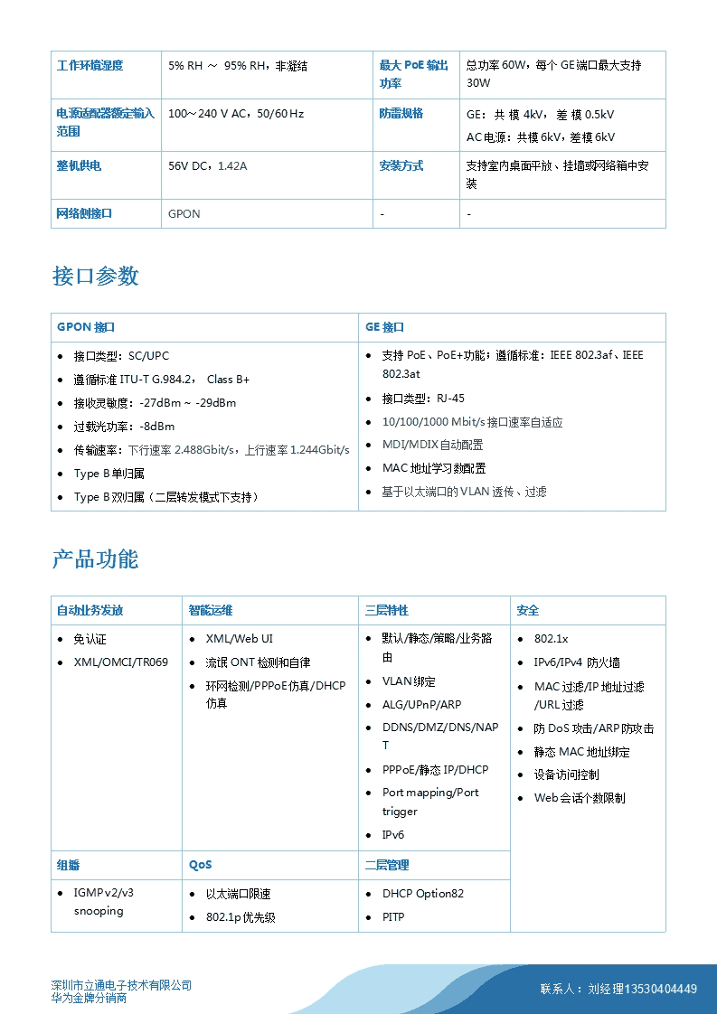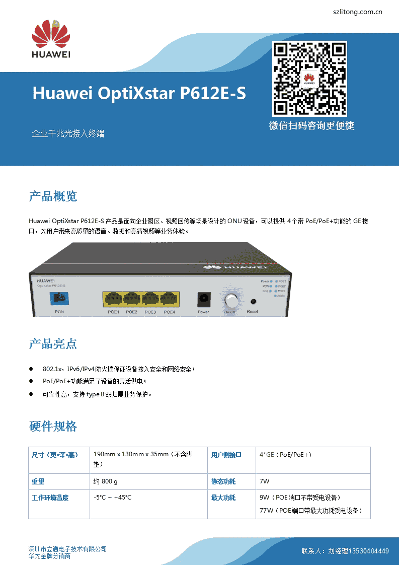 西南地区华为OptiXstar P612E-S-GPON企业园区4GE口POE型ONU