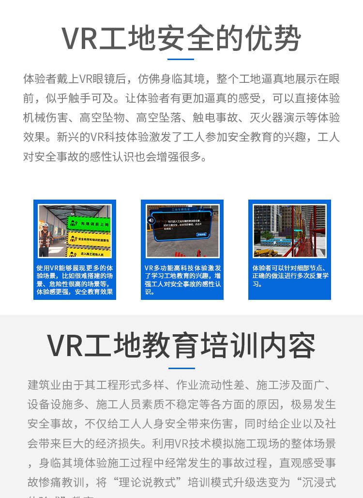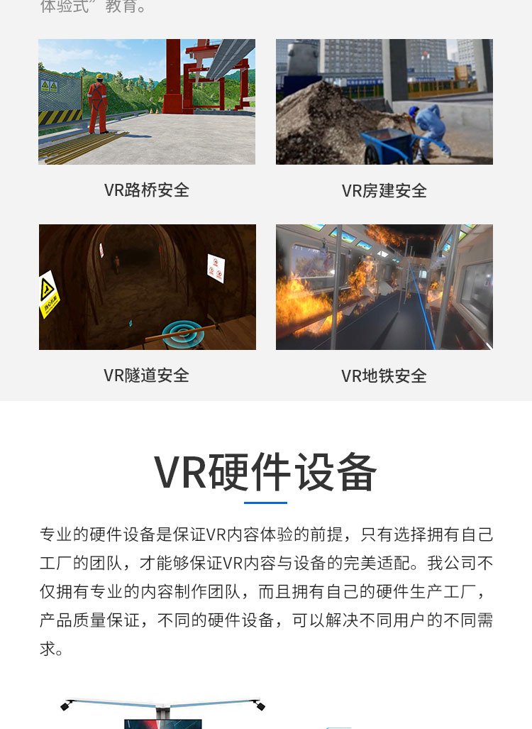 自主研发VR工地安全体验馆虚拟模拟房屋隧道路桥安全教育系统