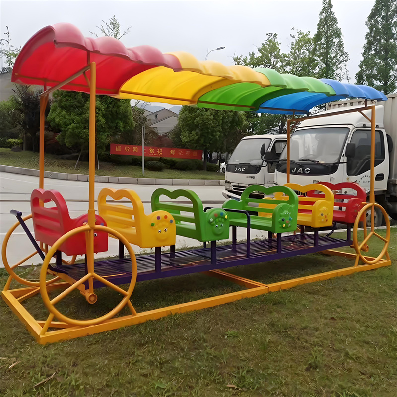 彩棚波浪船可以前后左右摇摆,坐在船上的小朋友会产生类似乘船在波浪中荡漾的感觉,增加游乐的趣味性和刺激性。