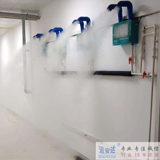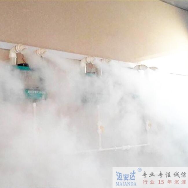 11、采用四个雾化机分散安装,杜绝了因为消毒间过大而导致的消毒死角,使消毒间内的每个人都能充分彻底的消毒。