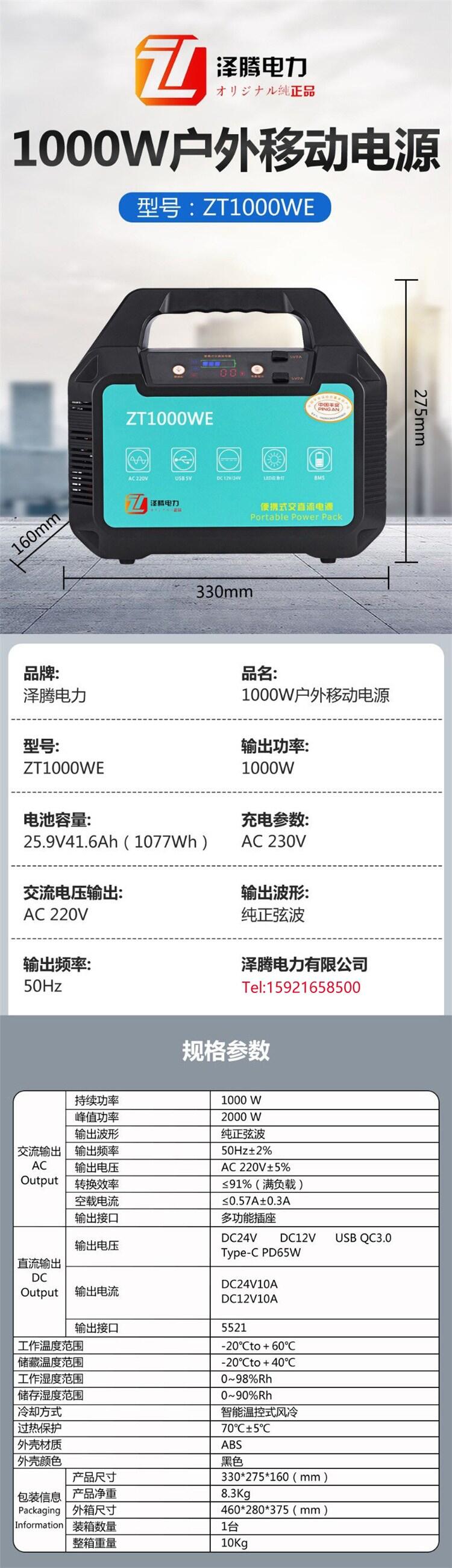 泽腾电力 1000W 户外电源 应急