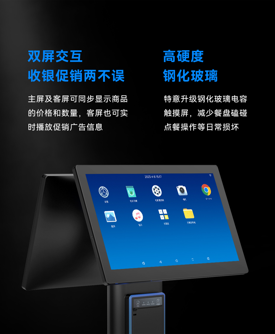 天波AI菜品识别餐台C203更实用,主屏及客屏可同步显示商品的价格和数量,客屏也可实时播放促销广告信息,特意升级钢化玻璃电容触摸屏,减少餐盘磕碰点餐操作等日常损坏。