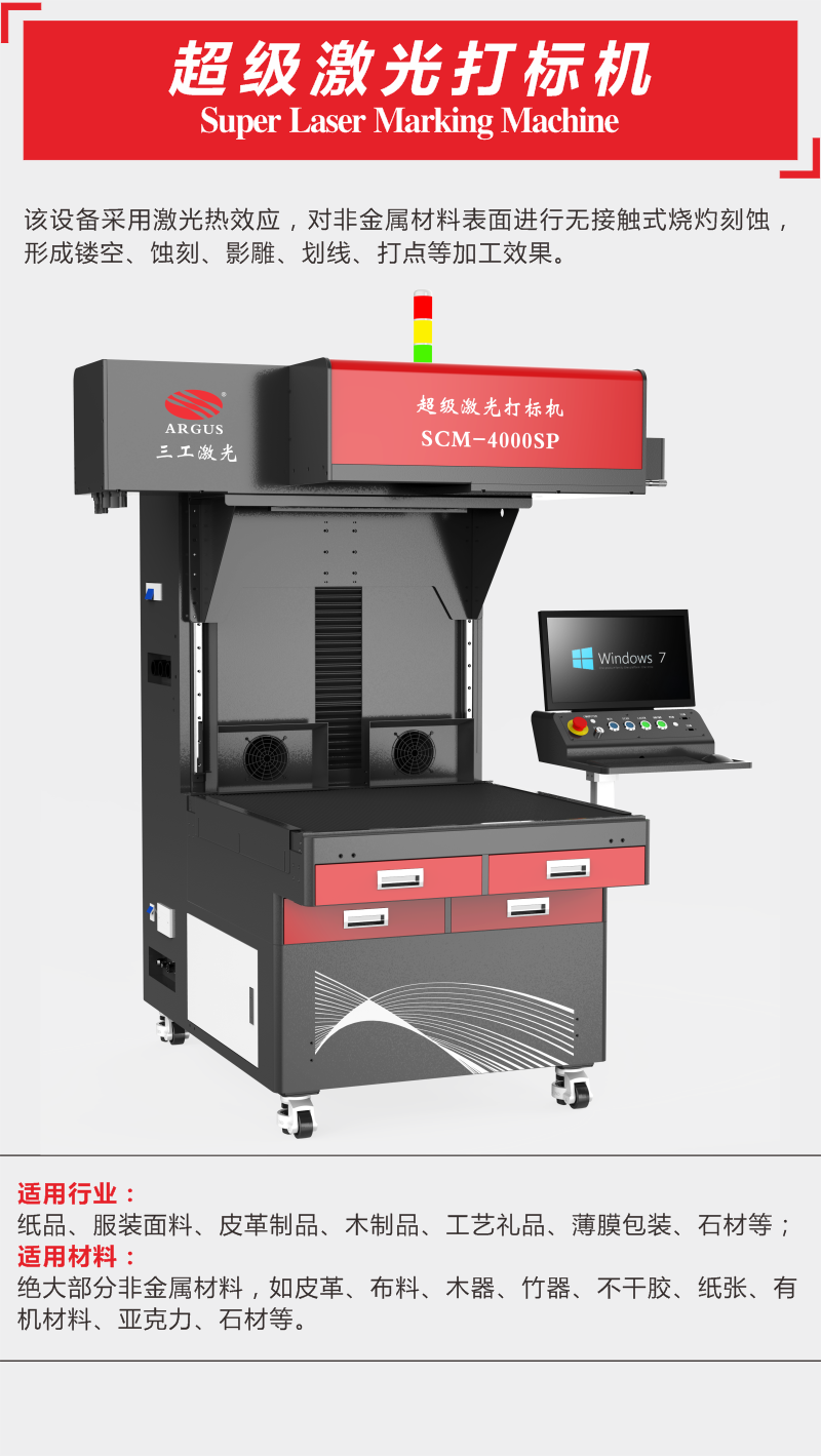该设备采用激光热效应,对非金属材料表面进行无接触式烧灼刻蚀,形成镂空、蚀刻、影雕、划线、打点等加工效果。