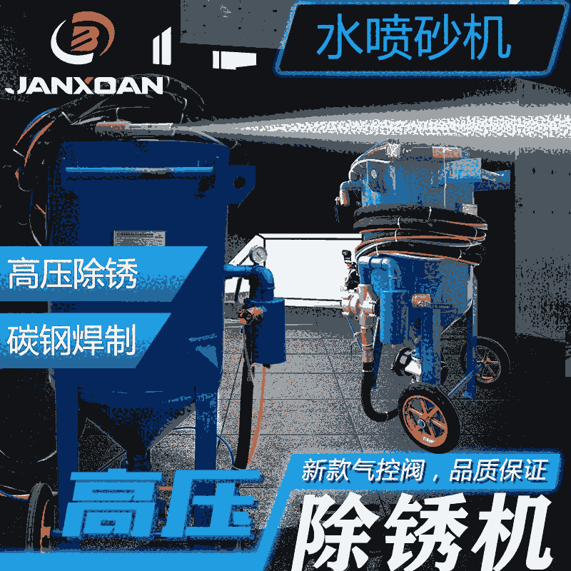 喷砂机由砂罐、砂阀、喷砂管、喷砂枪等部分组成。是以压缩空气为动力,将磨料(砂、铁砂、铜矿砂等)喷射到需要处理的工作表面的设备。压缩空气将磨料从沙罐中压出,经过砂阀和喷砂管到喷枪,磨料以大于200米/秒的速度喷出,由于末了对物体表面的冲击和切削 完成金属表面除锈、去氧化皮、旧漆皮和污垢的作用,并获得一定的清洁度和粗糙度 ,可达sa2.5-sa3.0的标准。对压缩空气压力磨料目数的调整变化,也可以用于建筑物,道路除垢、混凝土除垢、玻璃毛化等方面。