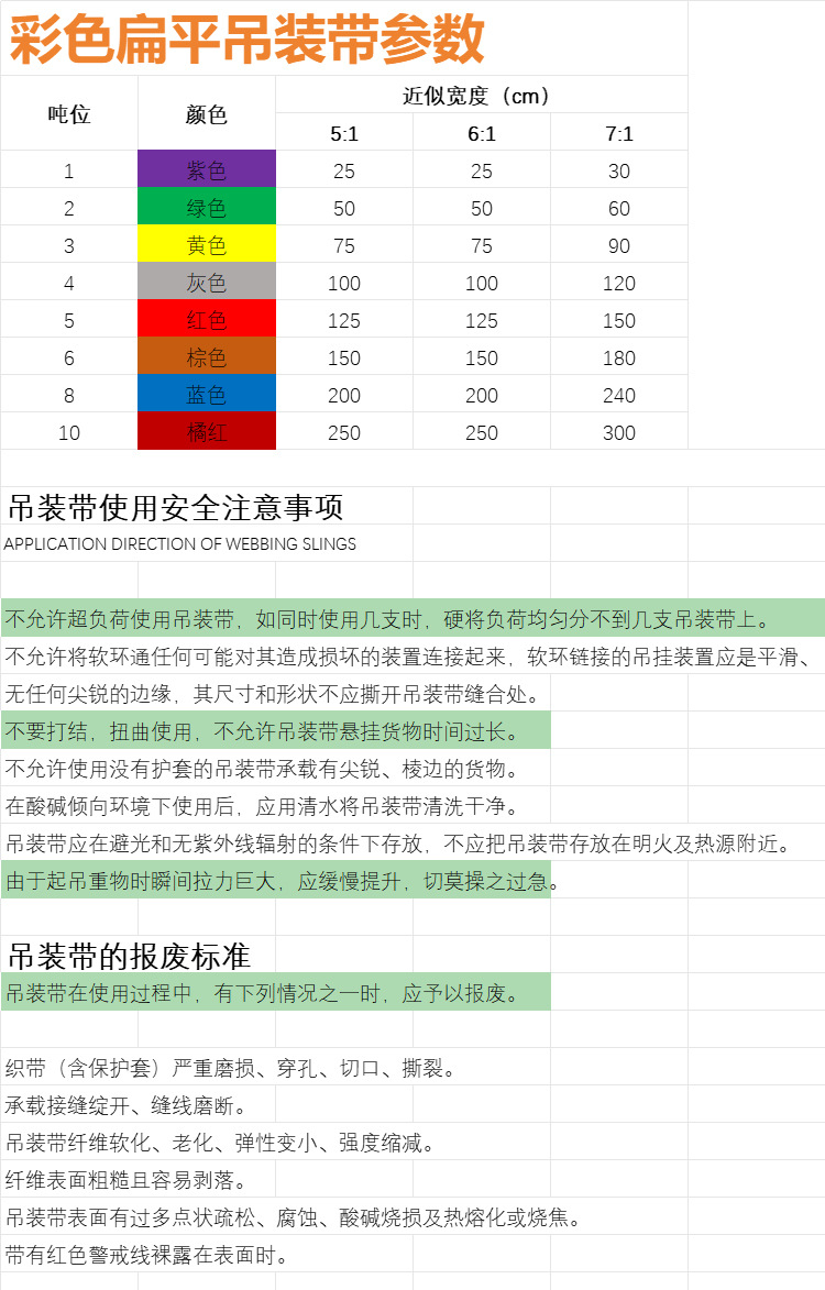 ★吊装方式多种多样,吊装带尺寸大小可随客户的要求而定,表面可经PU硬化处理。
