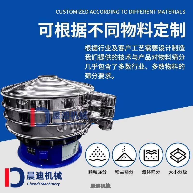 旋振筛根据材质常用的有接触物料不锈钢旋振筛、碳钢旋振筛和塑料材质旋振筛,用户可根据需求选用,并且根据产量和精细化筛分分级要求有单层和多层可选,物料和筛分要求不同配备的筛网也不同,可按照客户需求定制,是一种适用于高粘度、细粒物料筛分的工业设备,广泛应用于化工、食品、医药、冶金等行业的干湿物料分级与过滤,可按照客户需求定制,详情可致电15937360507。